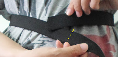 1. beri celah sedikit pada ban pinggang bagian belakang